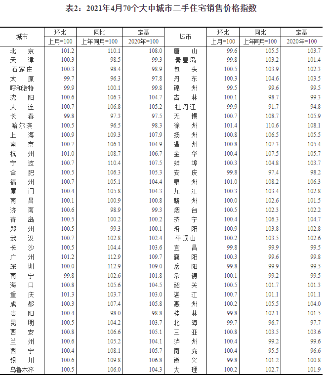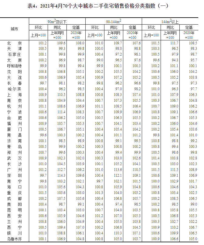 2021年4月份,國家統計局統計監測的70個大中城市新建商品住宅銷售價格漲幅總體有所擴大,二手住宅漲幅有升有落。針對這一現象,國家統計局城市司首席統計師繩國慶做出解讀: